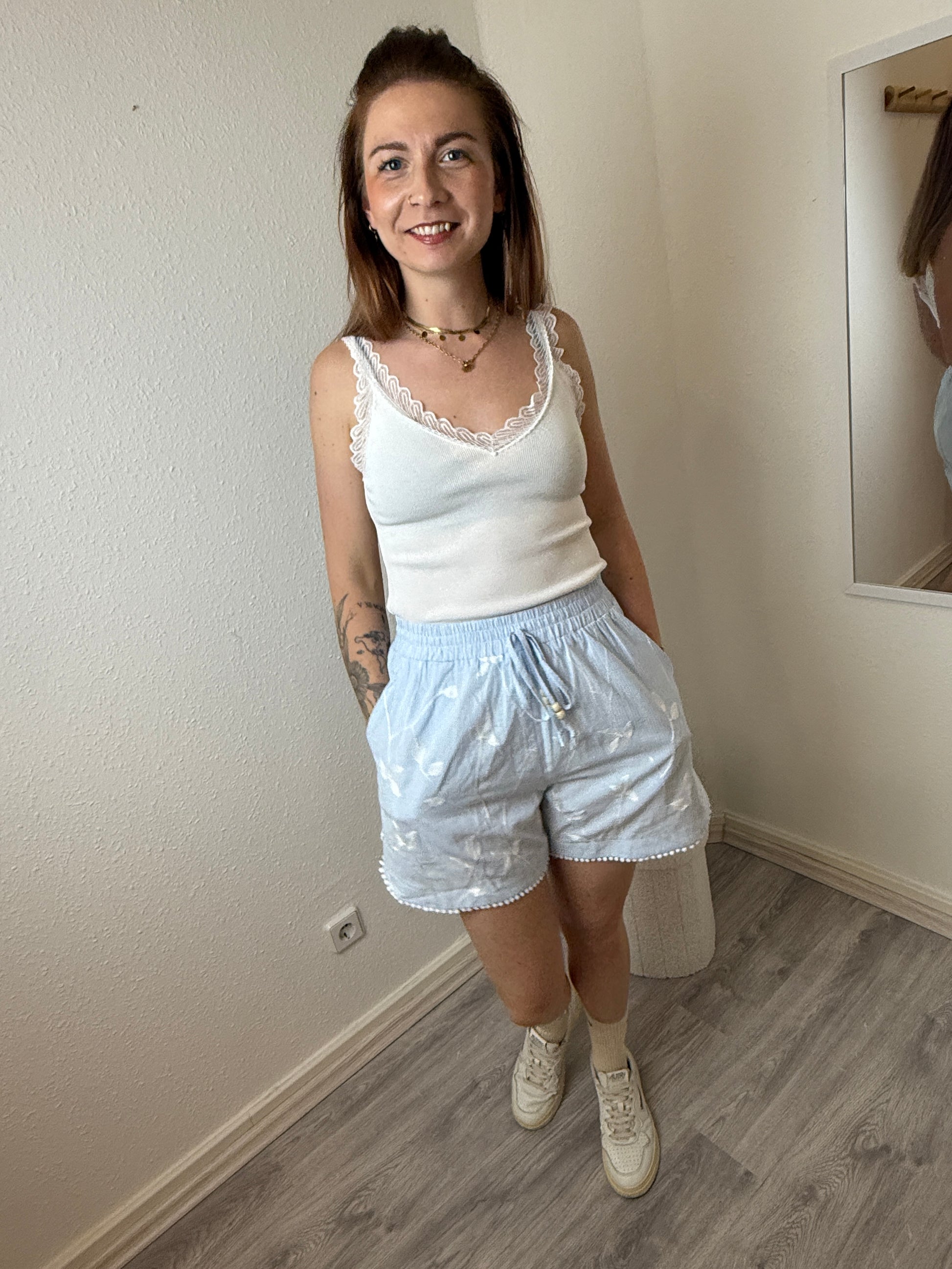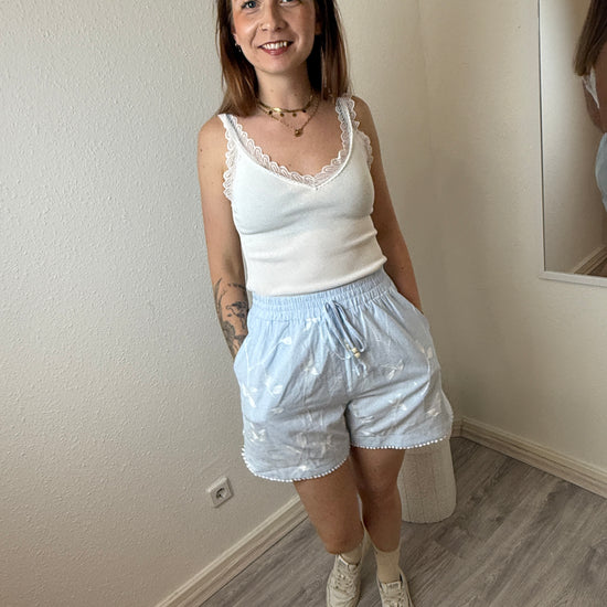 Shorts Baumwolle hellblau Blumenstickerei gestreift | useful Beauty