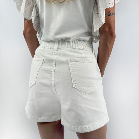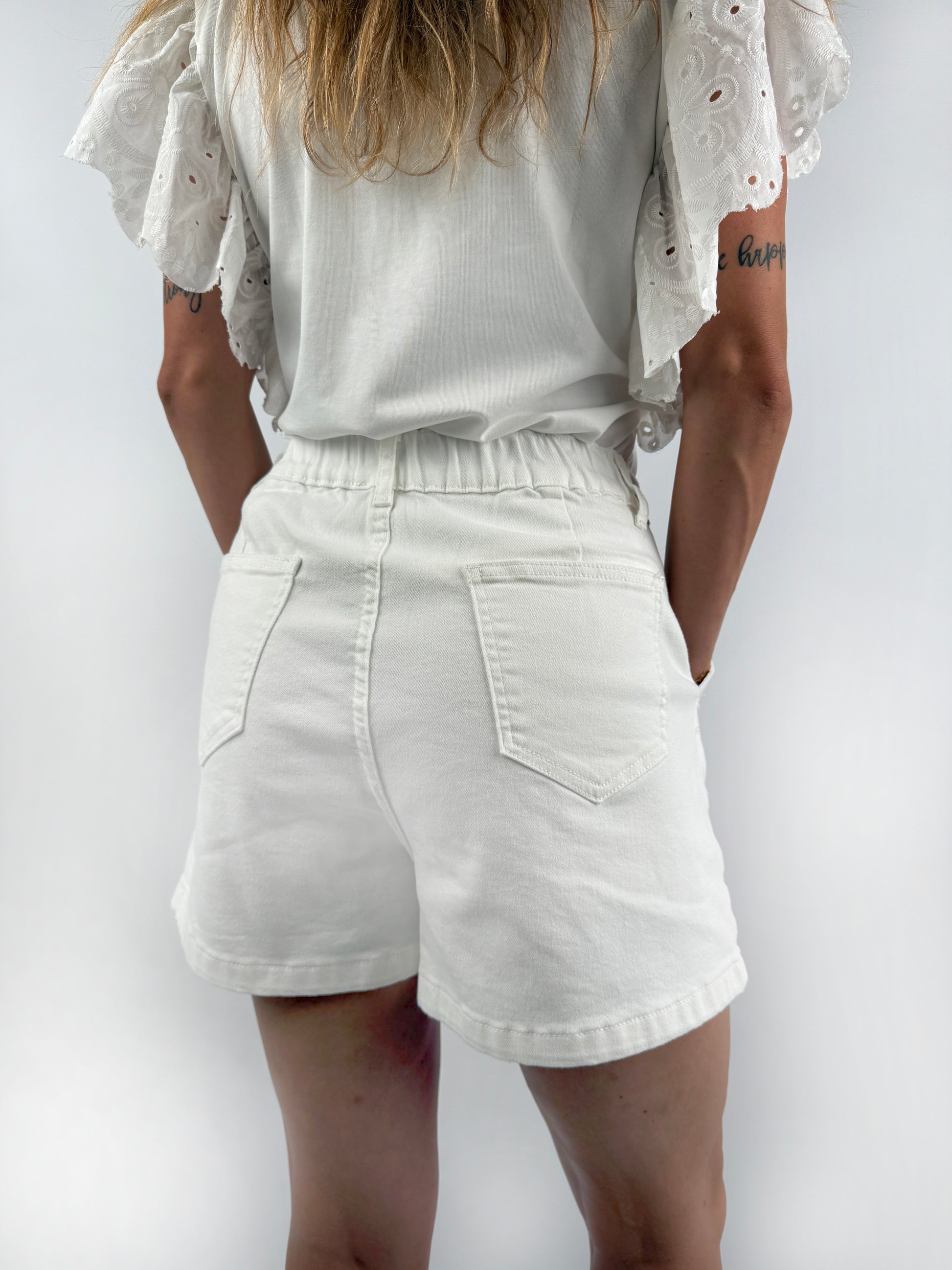 Diese weißen Shorts ist der Inbegriff von Sommerkomfort! Gefertigt aus einem besonders weichen und dehnbaren Material, passt sie sich Ihrer Figur perfekt an – ohne einzuengen. Der elastische Bund sorgt für maximalen Tragekomfort, während das schlichte Design mit Gesäßtaschen für einen lässigen Look sorgt.