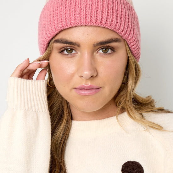Two-Tone Beanie „Soft Blend“ – Zweifarbige Wintermütze in Rosé & Pink / Beige & Sand